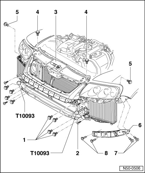 - Front bumper, vehicles through 10.2006, removing, refer to --> [ Bumper Cover ] Front Bumper, through 10.2006