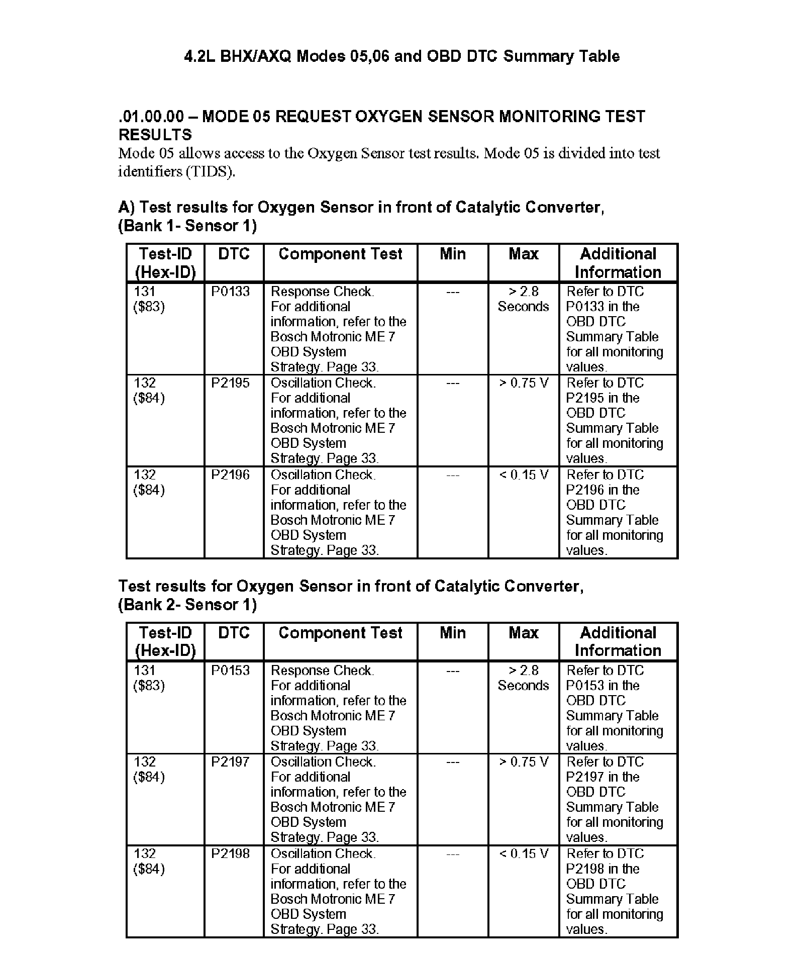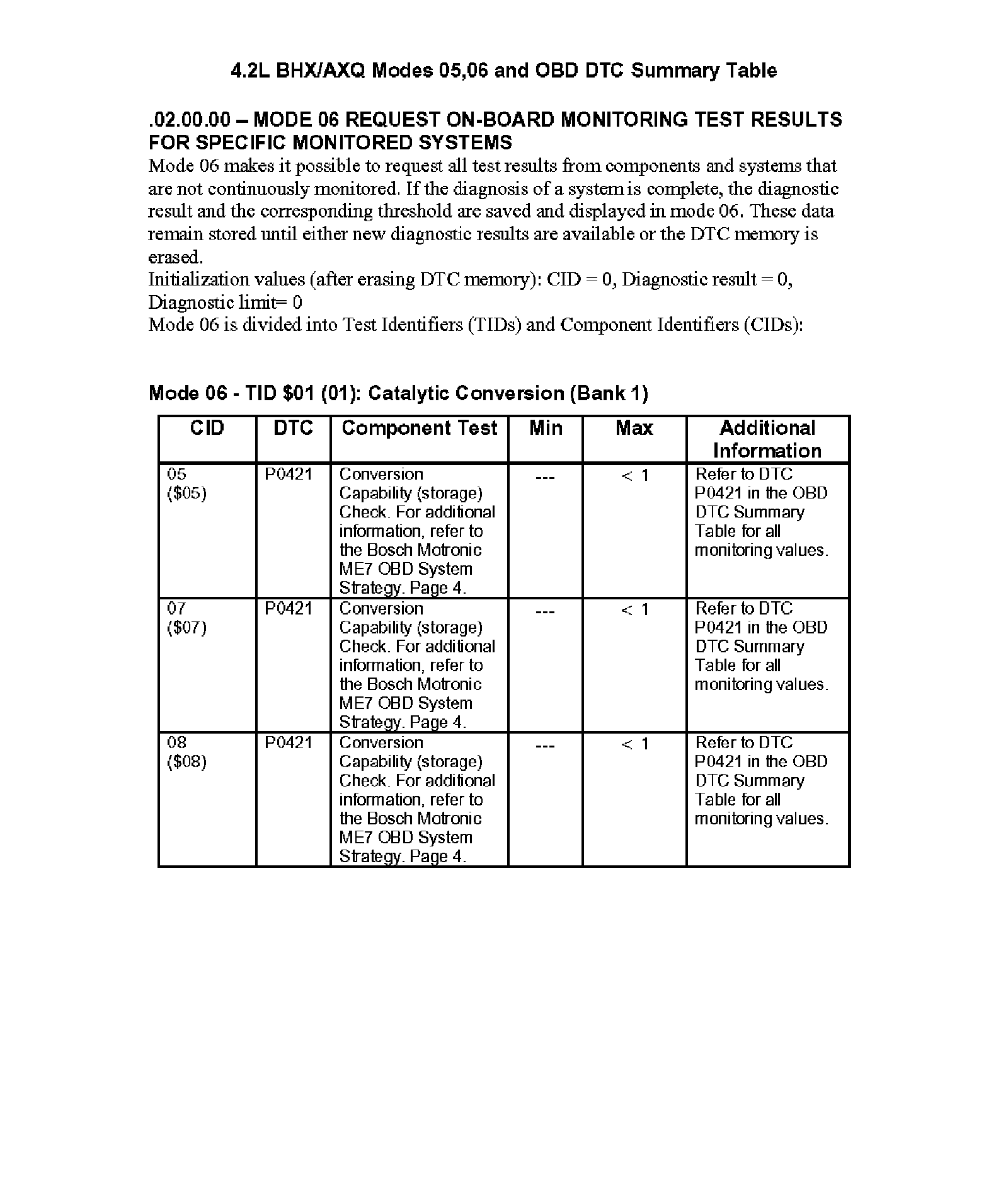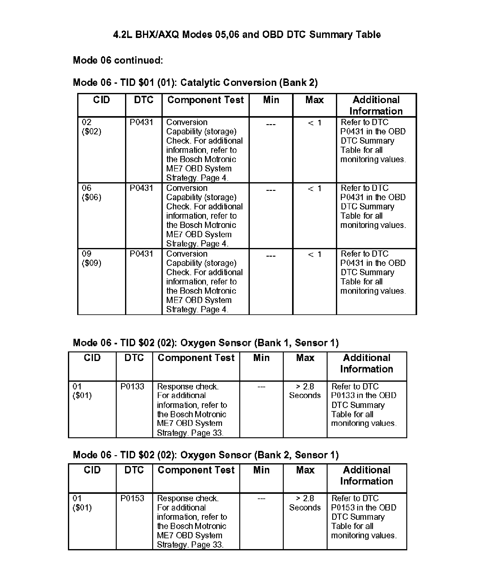 Modes 05/06 and OBD DTC Summary Table
