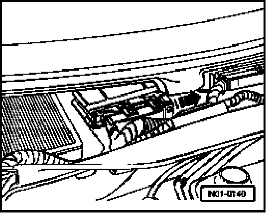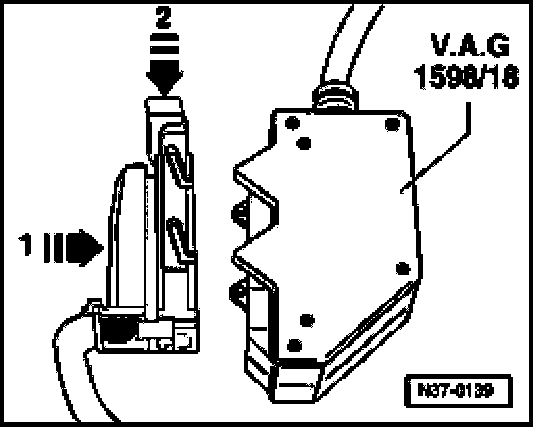 - Connect test box (V.A.G 1598/18) to control module wiring harness (arrow -1-) and engage (arrow -2-).