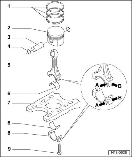 ^ Caps only fit in one position and only on appropriate connecting rod due to breaking procedure (industrially cracking) separating cap from connecting rod