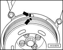 - Position vibration damper at TDC No. 1 cylinder (arrows).