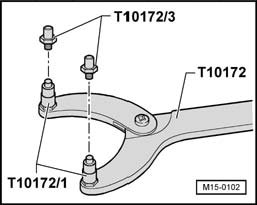 - Unscrew pins T10172/1.