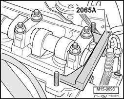- Set camshaft to TDC No. 1. Cyl. and insert adjustment bar 2065 A.