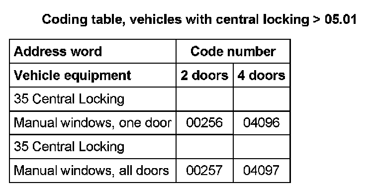 In this case the control module has not been programmed with the relevant data for the vehicle. A check must then be completed to see if the correct control module for the vehicle has been installed (compare Part No. and letter index), or whether an incorrect code number has been entered.