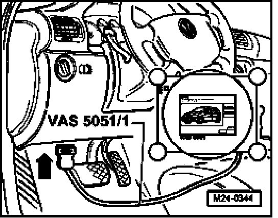 - Plug connector of diagnosis cable VAS 5051/1 or VAS 5051/3 to Data Link Connector (DLC) (arrow).