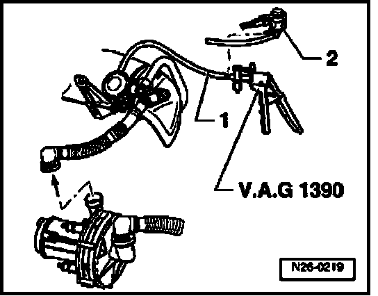 - Connect hand vacuum pump (V.A.G 1390) at vacuum hose -1- to combination valve.