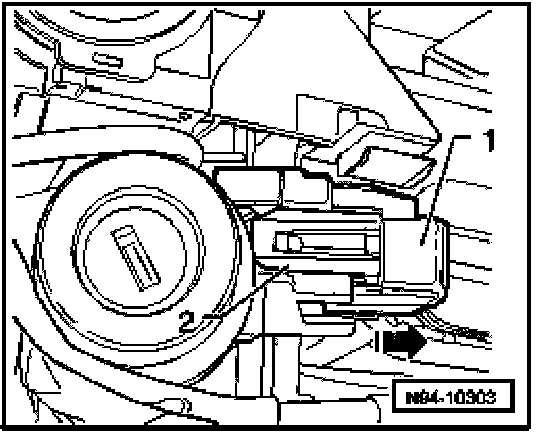 NOTE: To remove ignition key in vehicles with automatic transmission, always shift selector lever into position "P" and then switch off ignition. Otherwise, Ignition Key Removal Lock Solenoid N334 prevents ignition key from being removed.