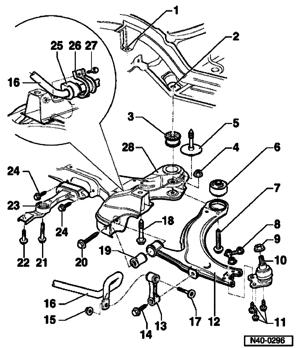 I - Subframe, stabilizer bar, control arm, assembly overview