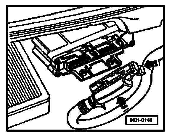 - Open locking mechanism of connector in -direction of arrow- and disconnect connector from control module.