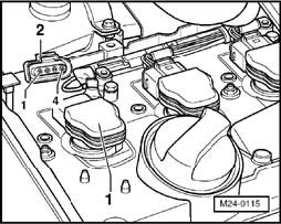 - Disconnect 4-pin connector - 2 - from ignition coils - 1 -.