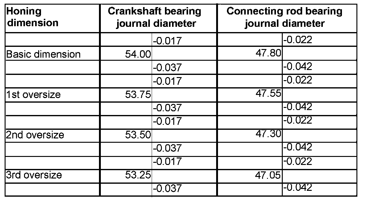 Crankshaft bearing shell identification for cylinder block (gradual introduction)