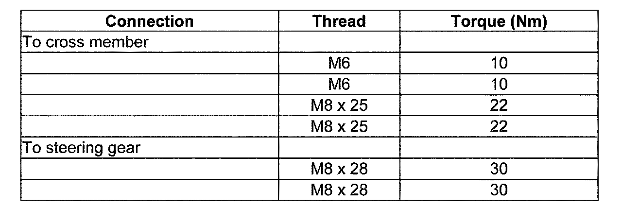 Steering gear, tightening torques