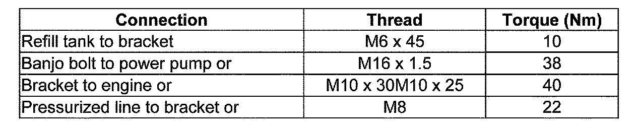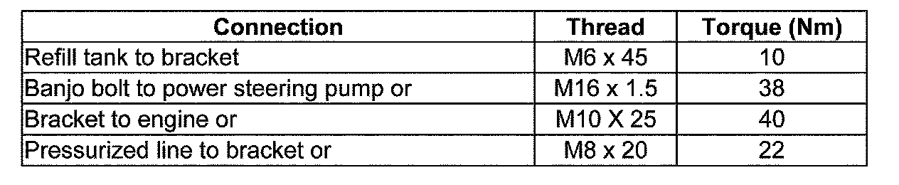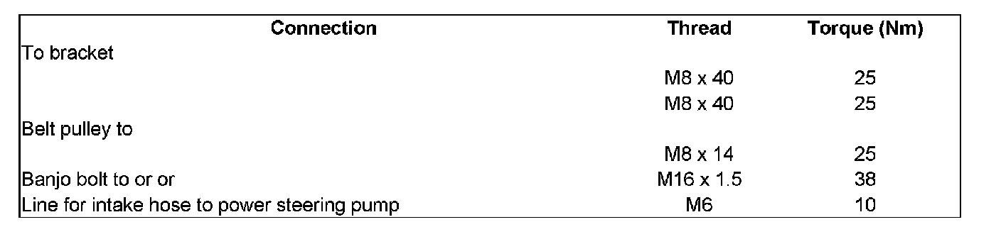 Power steering pump, tightening torques