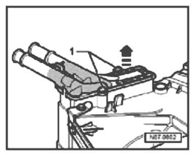 - Pull heater core up and out from housing -arrow-