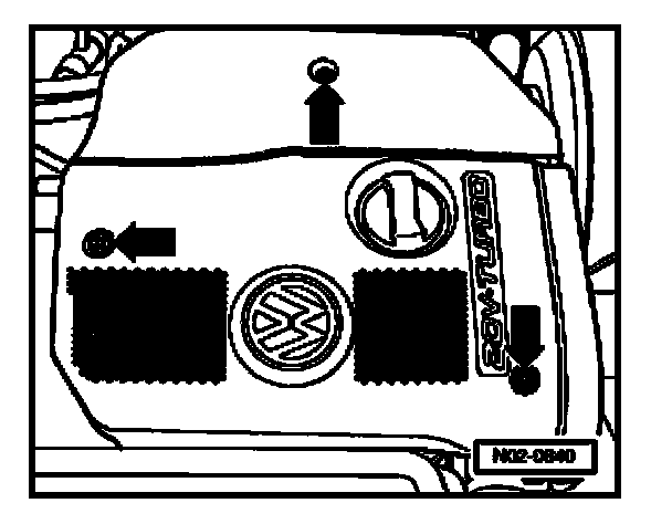 - Install engine cover and engage clamp screws - arrows.