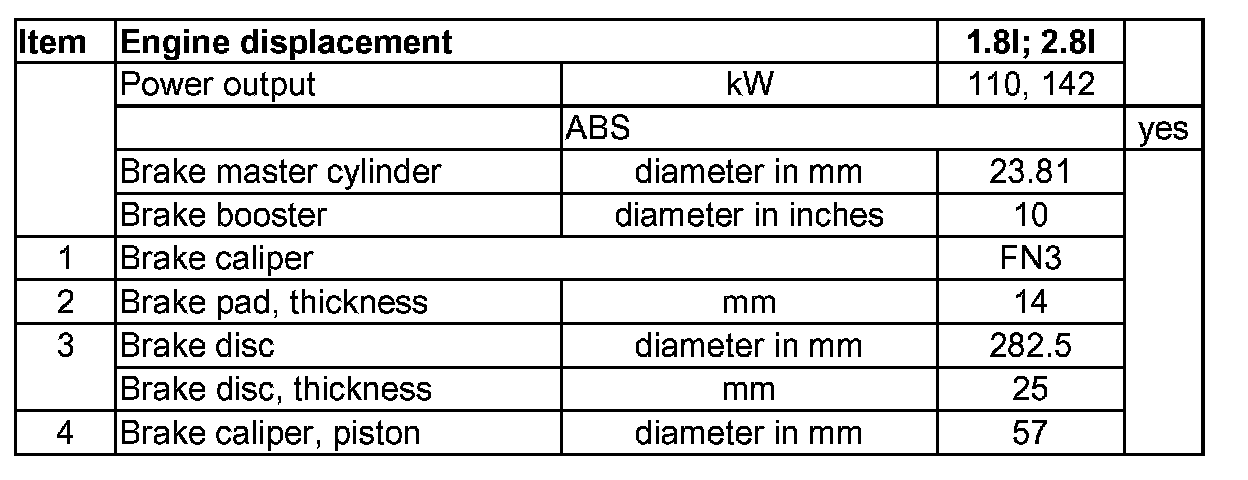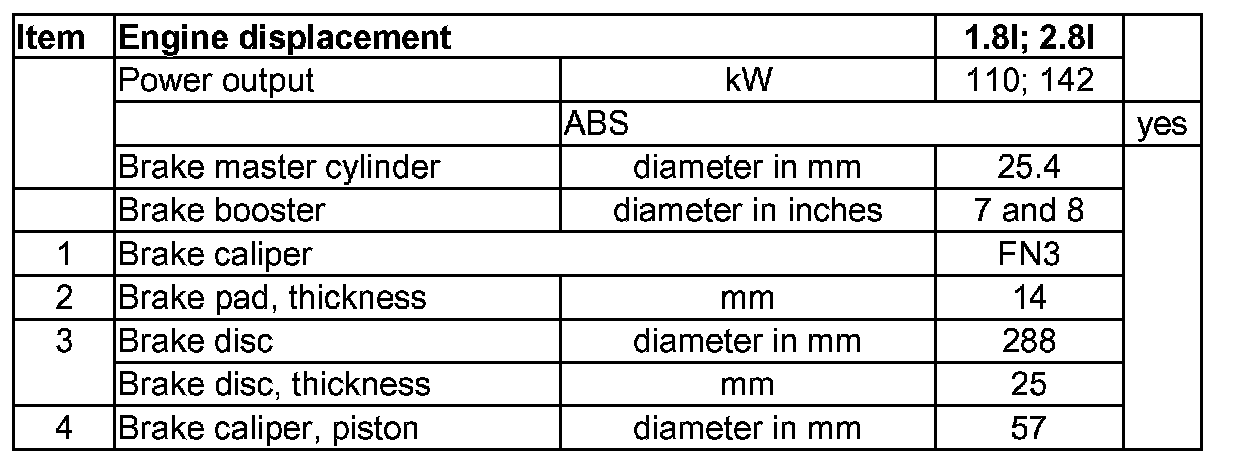 Vehicles with brake caliper FN3, 15" wheel from model year 2001