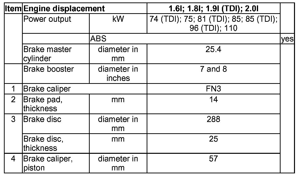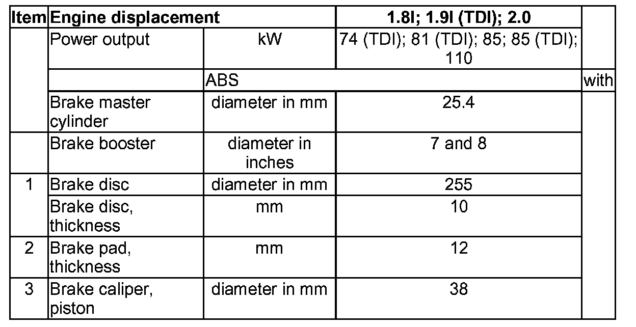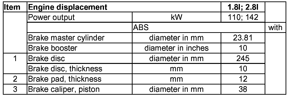 Vehicles with rear disc brakes, 15" and 16" wheel, front-wheel drive, from model year 2001