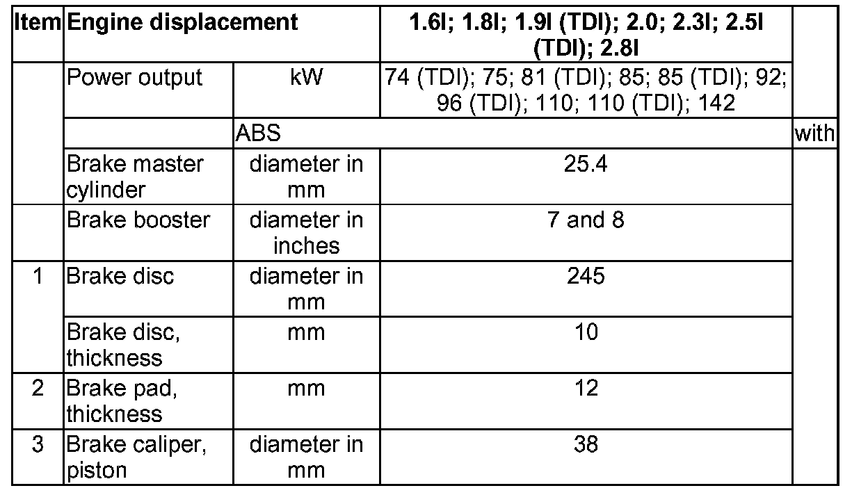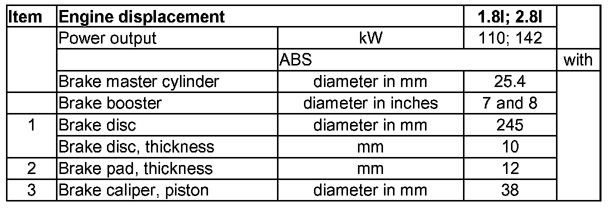 Vehicles with rear disc brakes, 15" wheel up to model year 1999