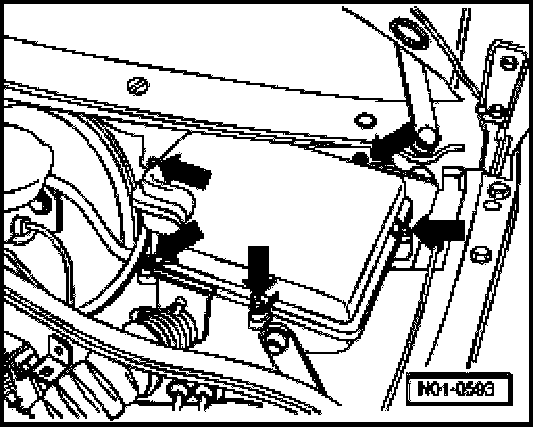 - Remove securing screws at cover of protective housing for control modules -arrows- and remove cover.