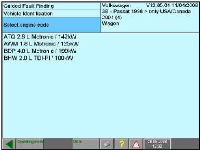 - Select applicable engine code