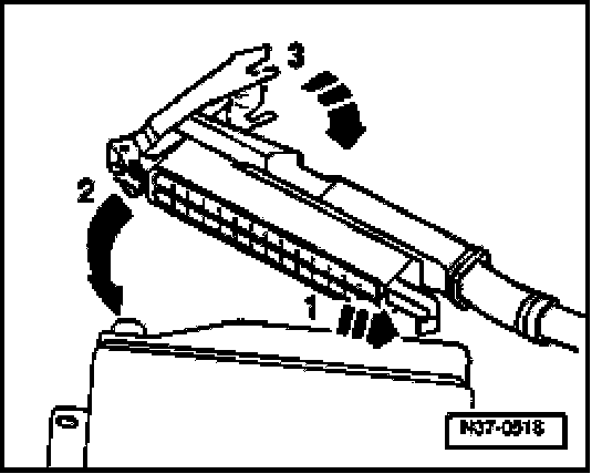 - Position connector on connector housing -1-, swivel in -2- and engage -3-.