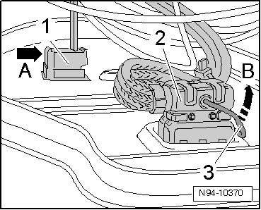 - Release retainer - 3 - on connector - 2 - in - direction of arrow B - and remove connector - 2 -.