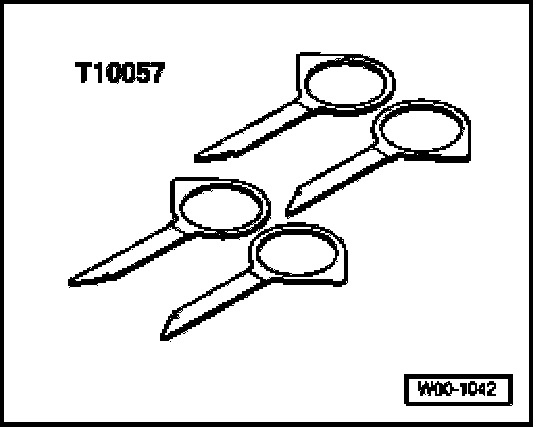 NOTE: Use of separate tools T10057 is illustrated here. Procedure is essentially the same for tool JC4225 where all release prongs are integrated into a frame