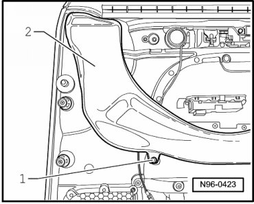 - Remove mounting bolt - 1 - and remove air channel - 2 -.