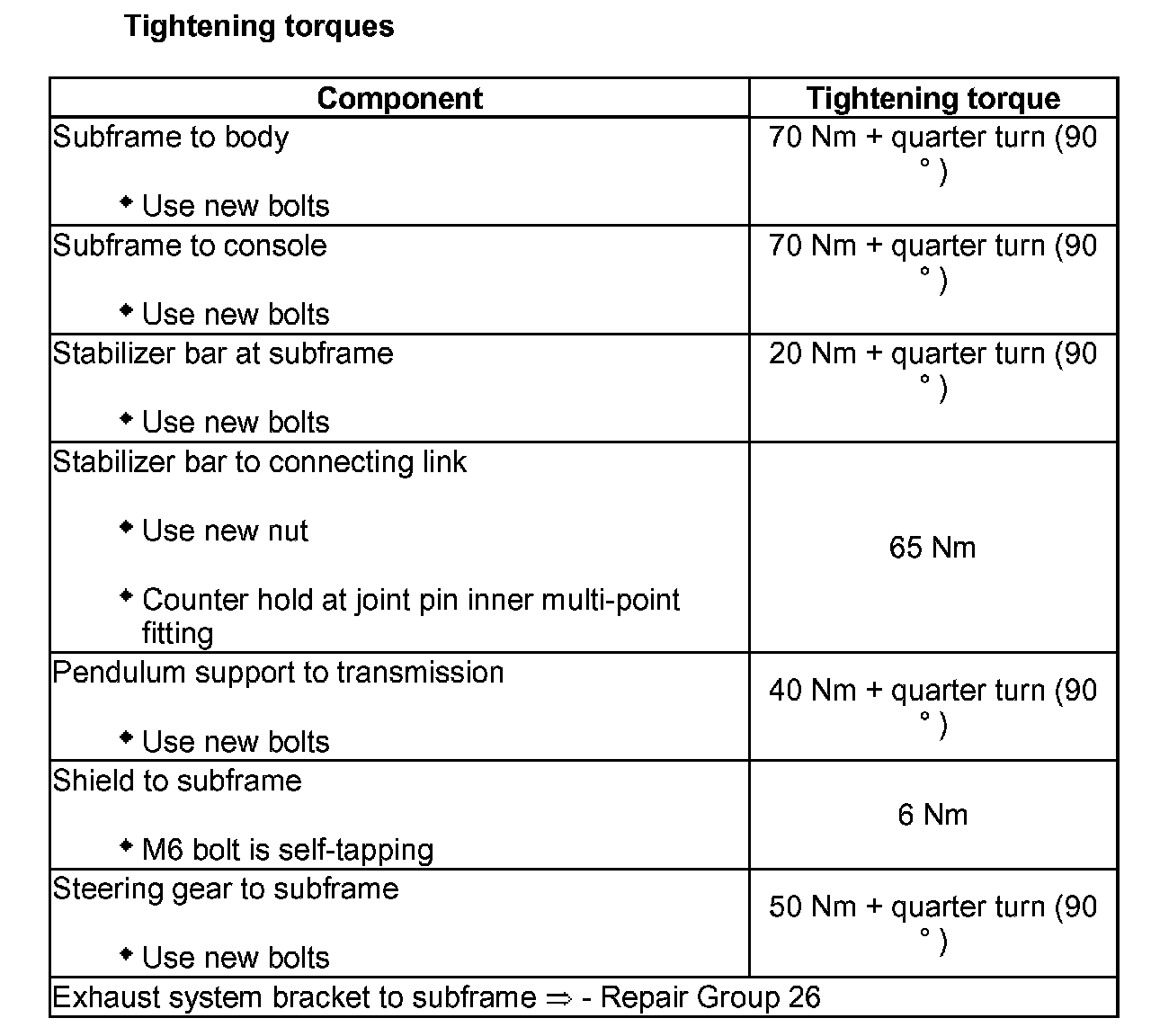 - Remove bracket for exhaust system from subframe.