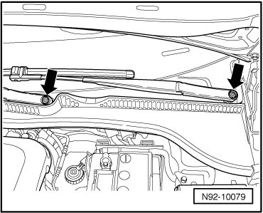 - Loosen the wiper arm nuts - arrows - several turns.