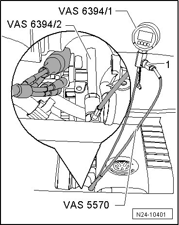 • If the (VAS 6394/1) does not display 0 bar, set it back to zero, refer to the operating instructions.