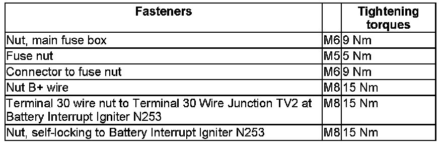 Main Fuse Box, Tightening Torque: