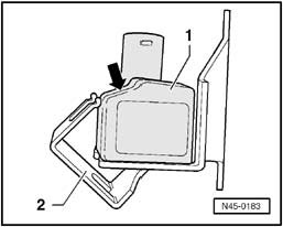 - Installation position: The angled section (arrow) of longitudinal acceleration sensor - G251- -1- must face retainer -2-.