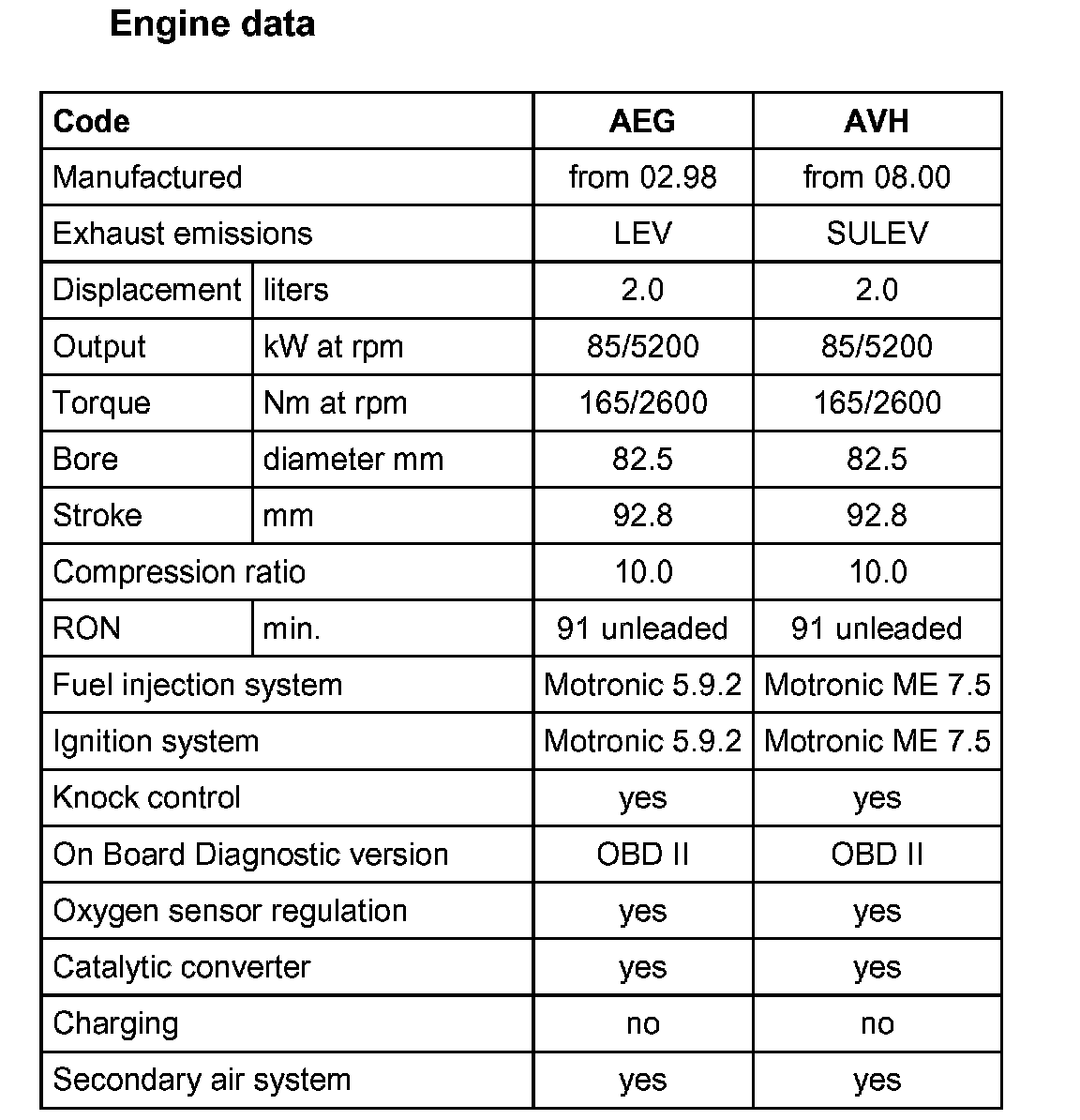 Engine data (Part 2):