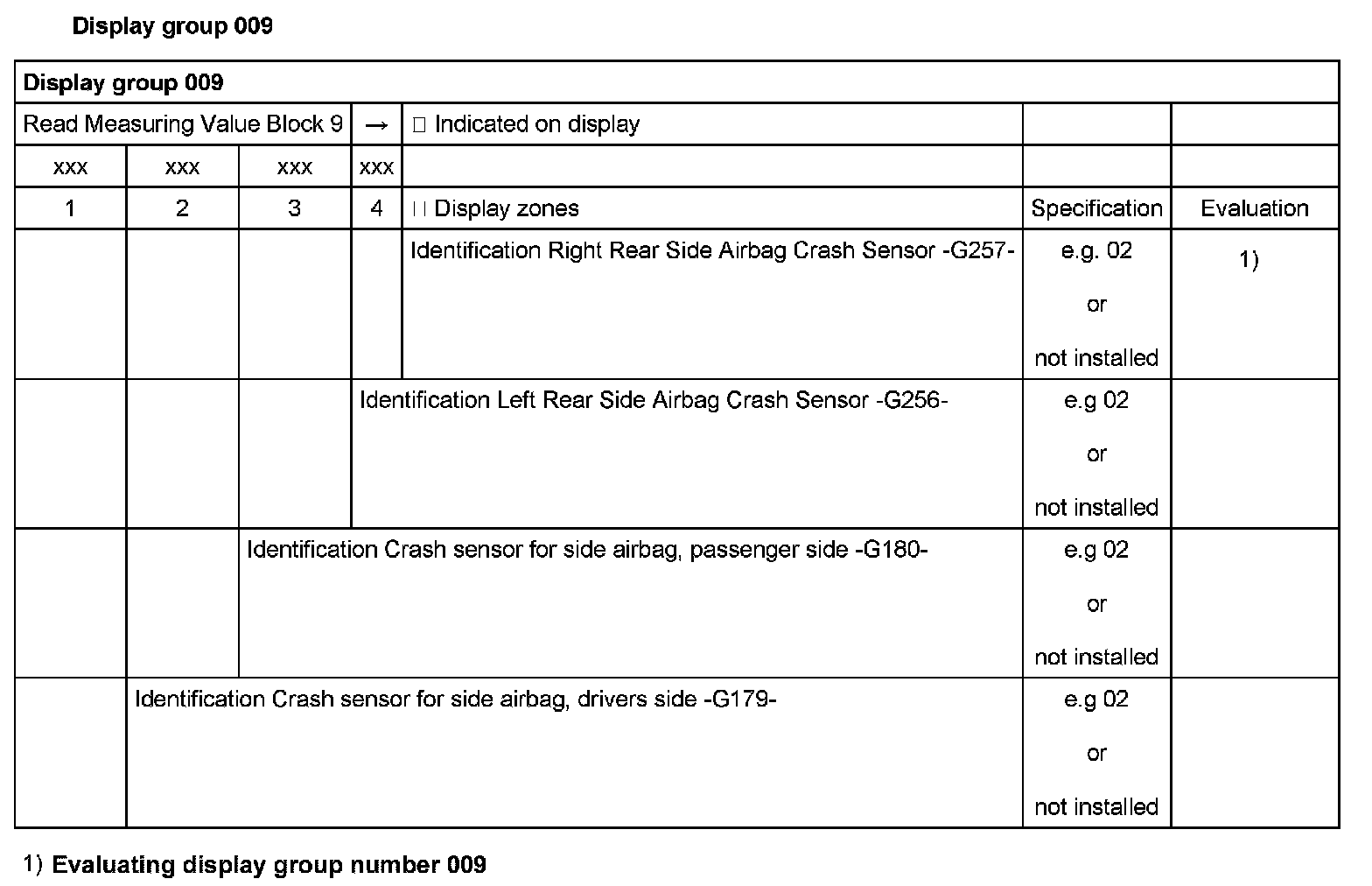 Evaluating display group 009