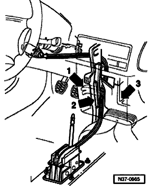 Locking cable, removing and installing, 01M, 4 Spd. A/T