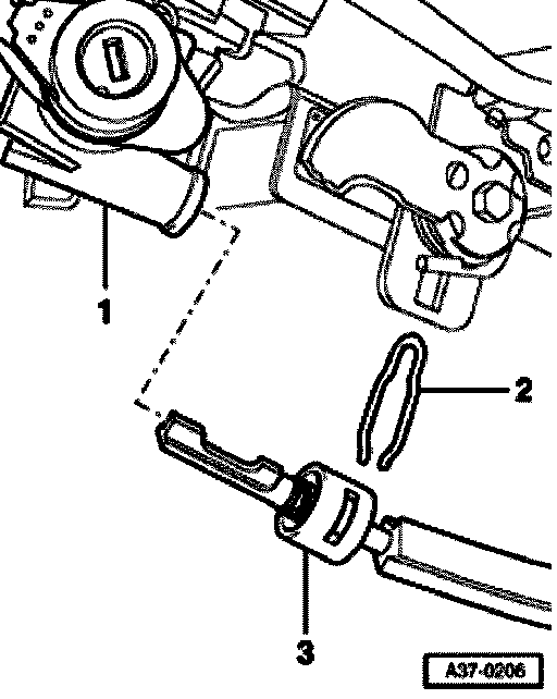 - Push locking cable into steering lock go to Fig. A37-0206.