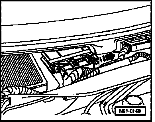 - Open locking mechanism of connector in -direction of arrow- and disconnect from control module.