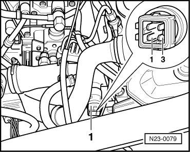 - Disconnect the Engine Coolant Temperature (ECT) Sensor (G62) electrical harness connector - 1 -.