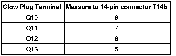 - Using a Multimeter, check each Glow Plug electrical connector, in sequence, from 1 to 4, to Ground (GND) for voltage.