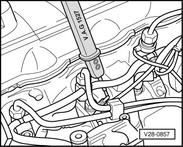 • Fuel system is under pressure! Before opening system, place rags around the connection point. Then release pressure by carefully loosening connection.
