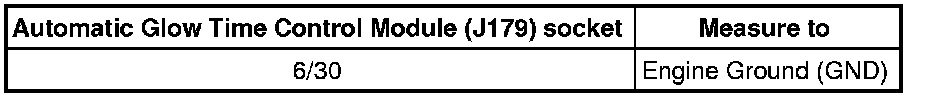 - Using a Multimeter, check the Automatic Glow Time Control Module (J179) socket 6/30 to Fuse 51 on fuse panel.