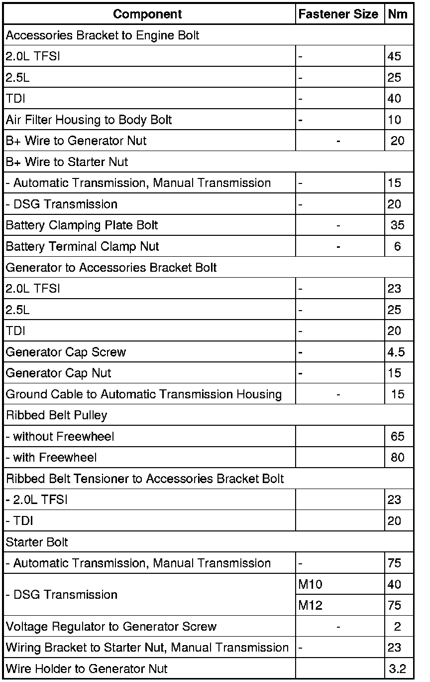 Starting and Charging: Specifications
