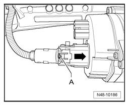 - To do so, press button - A - in direction of - arrow - and then disconnect connector.