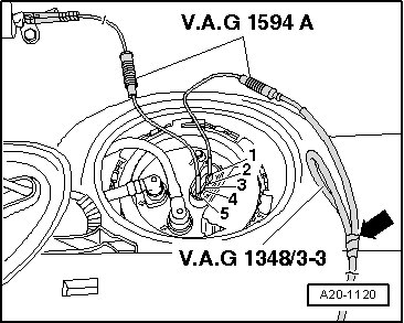 - Connect a jumper cable from a Electrical connector test lead set to terminal - 5 - of the fuel delivery unit and to vehicle Ground (GND).