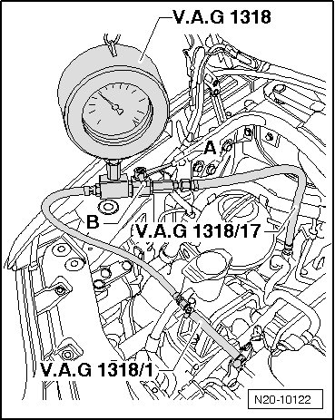 - Connect a High pressure fuel gauge between the fuel filter and the fuel supply line.