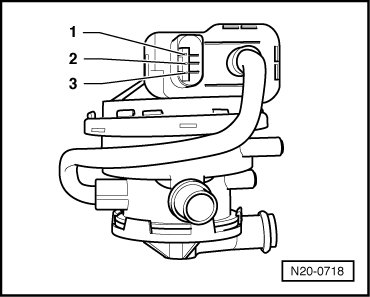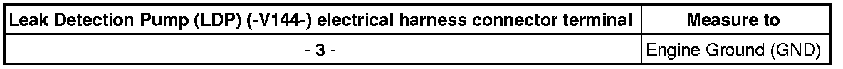- Using a Multimeter, check the Leak Detection Pump (LDP) (-V144-)electrical harness connector terminal 3 to Ground (GND) for voltage.