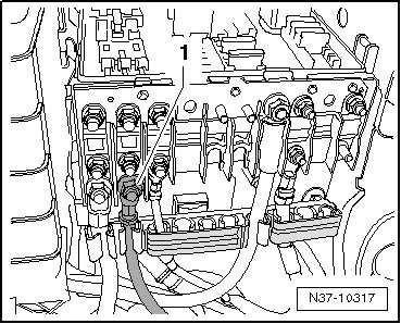 - Place a block of wood - 1 -, for example, between (V.A.G 1383 A) and the subframe.