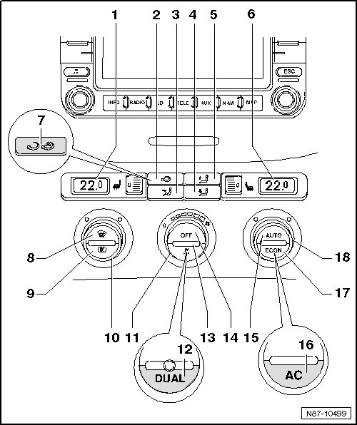 • Refer to the notes regarding vehicles through calendar week 21/07 and from calendar week 22/07. Refer to=> [ Climatronic A/C System with Automatic Control ] Climatronic A/C System With Automatic Control.