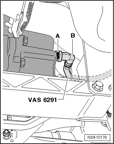 - You can check for correct filling by lifting vehicle again and check whether oil is leaking out at adapter - A -.